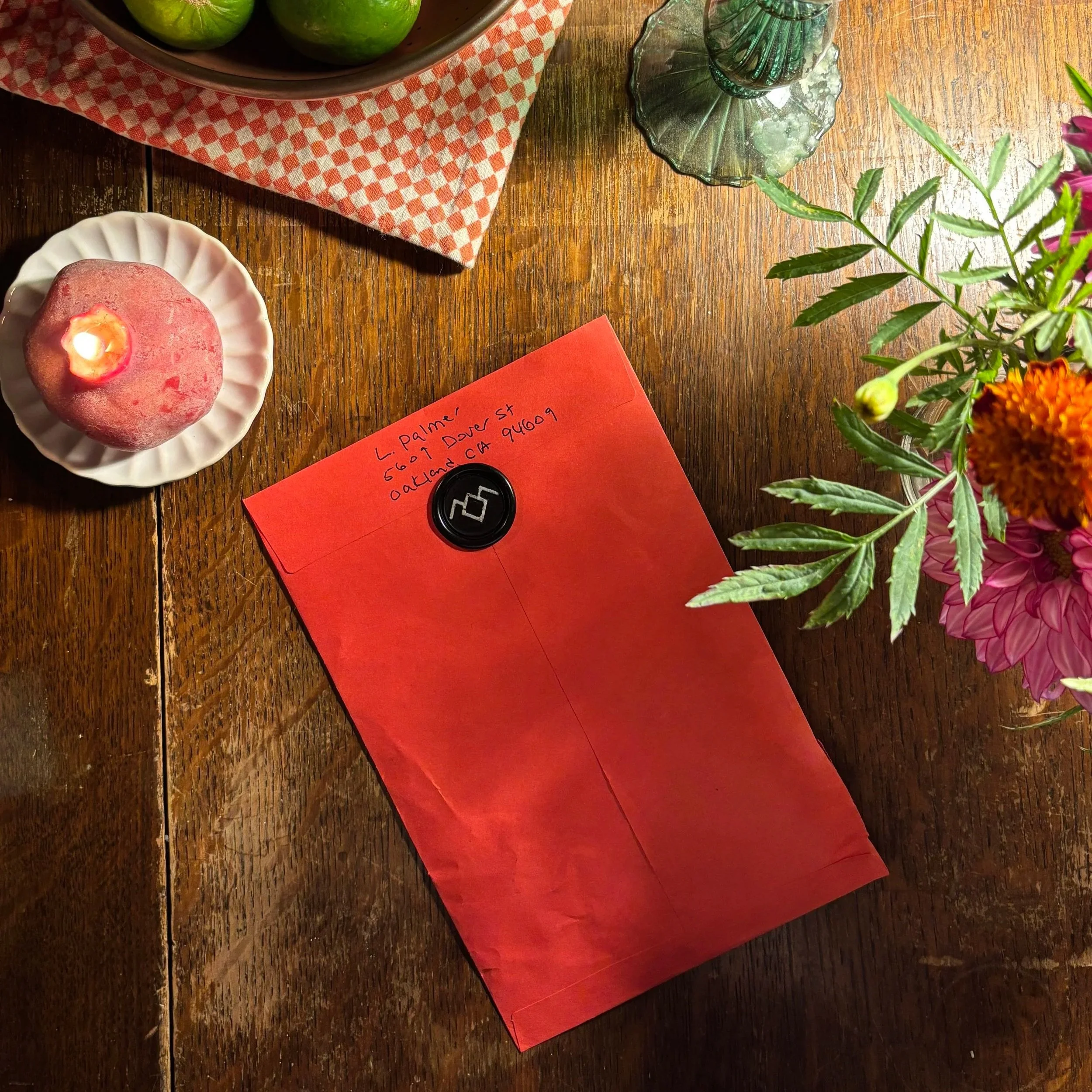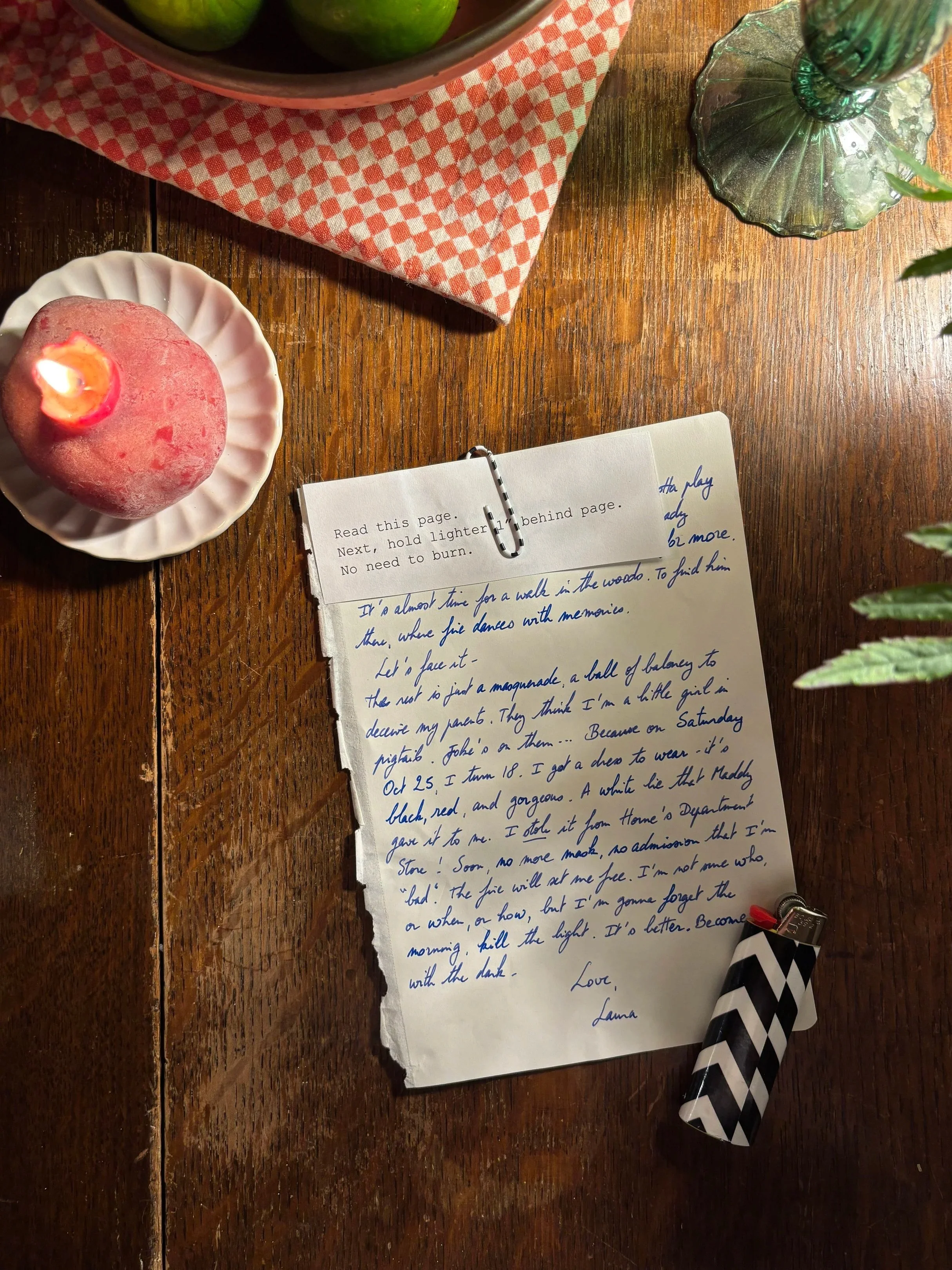 To enter the world of Fire Dance With Me, guests received a “lost” diary entry in the mail penned by Twin Peaks’ main character Laura Palmer. The envelope was stamped with a custom-made wax seal featuring a symbol from the show. Inside, along with the diary entry was a custom-wrapped chevron-patterned lighter. When recipeints held the flame behind the page, sections of the text vanished, revealing the party invitation and a URL to a hidden microsite with a moodboard and a second video invitation homage to the famous Twin Peaks opening credits.